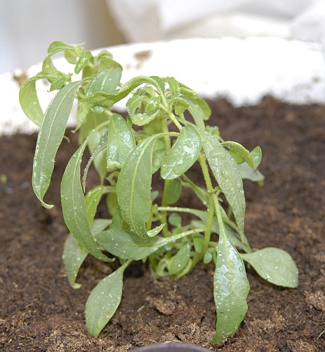 Seedling growing in soil. Plant which is growing in Waterfarm looks a lot better at the moment.